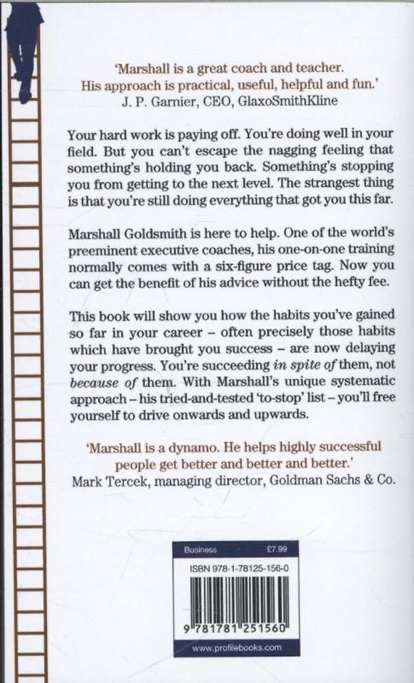 Meer over Marshall GoldsmithOf u nu boven aan de ladder staat of nog aan het klimmen bent, dit boek is uw gids om uw slechte gewoontes te doorbreken en te bereiken wat u wilt bereiken.