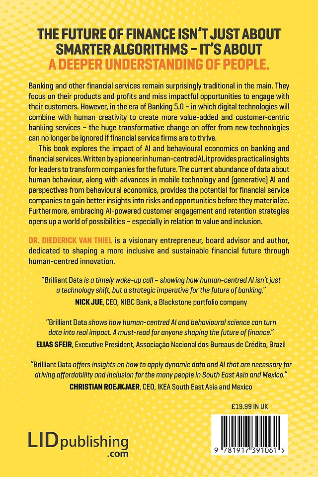 This book explores the impact of AI and behavioural economics on banking and financial services. Written by a pioneer in human-centred AI, it provides practical insights for leaders to transform companies for the future. The current abundance of data about human behaviour, along with advances in mobile technology and (generative) AI and perspectives from behavioural economics, provides the potential for financial service companies to gain better insights into risks and opportunities before they materialize.