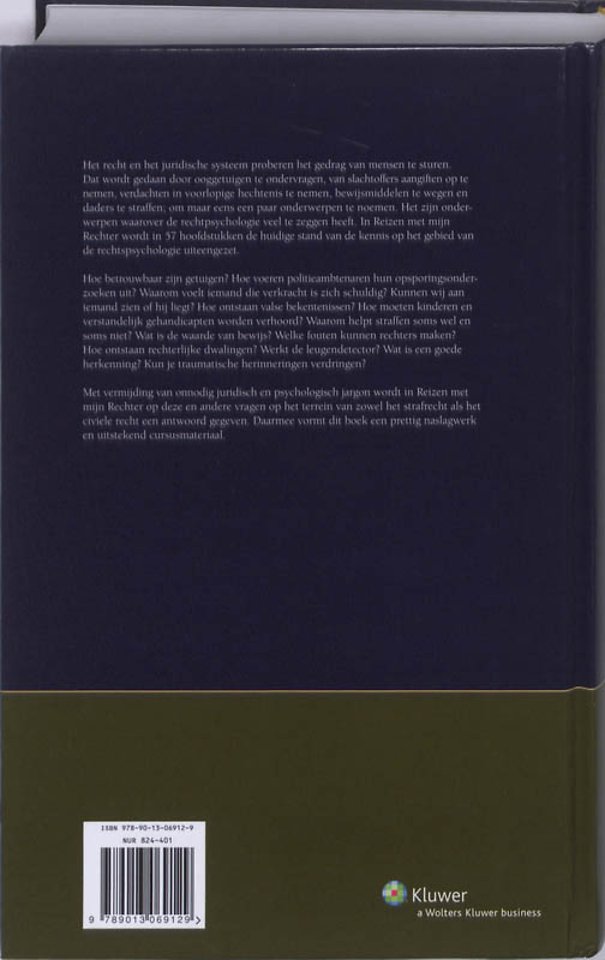Het recht en het juridische systeem proberen het gedrag van mensen te sturen. Dat wordt gedaan door ooggetuigen te ondervragen, van slachtoffers aangiften op te nemen, verdachten in voorlopige hechtenis te nemen, bewijsmiddelen te wegen en daders te straffen; om maar eens een paar onderwerpen te noemen. Het zijn onderwerpen waarover de rechtspsychologie veel te zeggen heeft. In 'Reizen met mijn Rechter' wordt in 57 hoofdstukken de huidige stand van de kennis op het gebied van de rechtspsychologie uiteengezet.