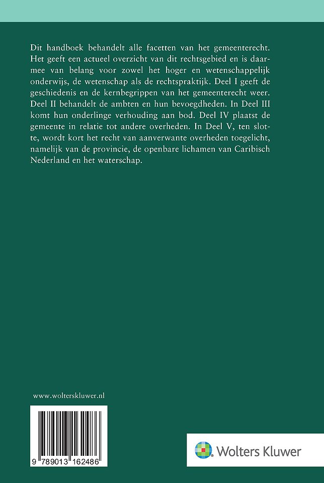Deze titel behandelt alle facetten van het gemeenterecht en geeft een volledig en up-to-date overzicht van alle belangrijke gemeenterechtelijke leerstukken. Dit maakt het handboek geschikt voor het onderwijs, de wetenschap en de rechtspraak. De uitgave neemt een unieke positie in; er is geen ander actueel handboek over gemeenterecht op de markt.