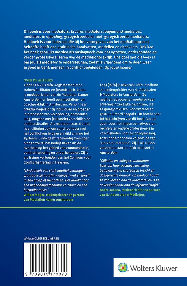Deze uitgave biedt praktische handvatten, modellen en checklists voor elke fase van het mediationproces. Ook leent de titel zich uitstekend als naslagwerk voor het opzetten, onderhouden en verder professionaliseren van de mediationpraktijk.