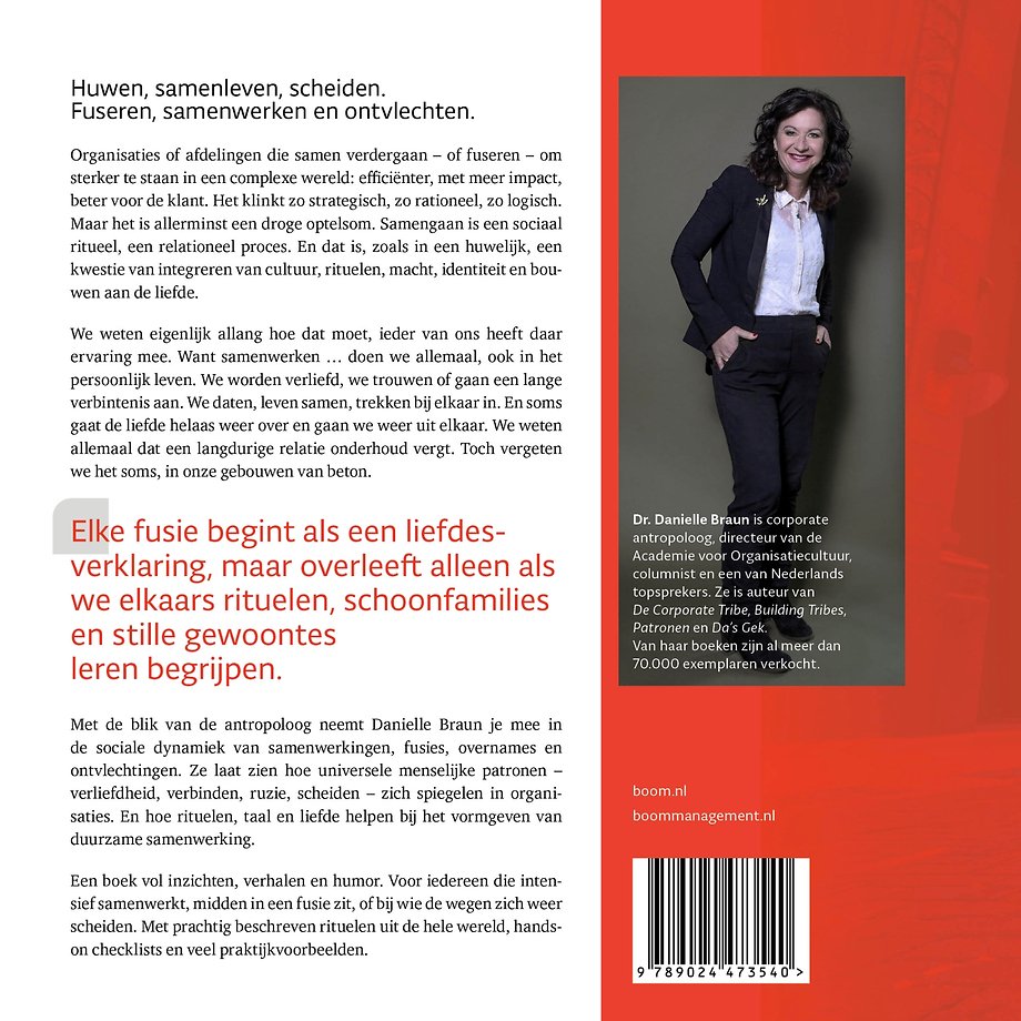 Met de blik van de antropoloog neemt Danielle Braun je mee in de sociale dynamiek van samenwerkingen, fusies, overnames en ontvlechtingen. Ze laat zien hoe universele menselijke patronen – verliefdheid, verbinden, ruzie, scheiden – zich spiegelen in organisaties. En hoe rituelen, taal en liefde helpen bij het vormgeven van duurzame samenwerking.