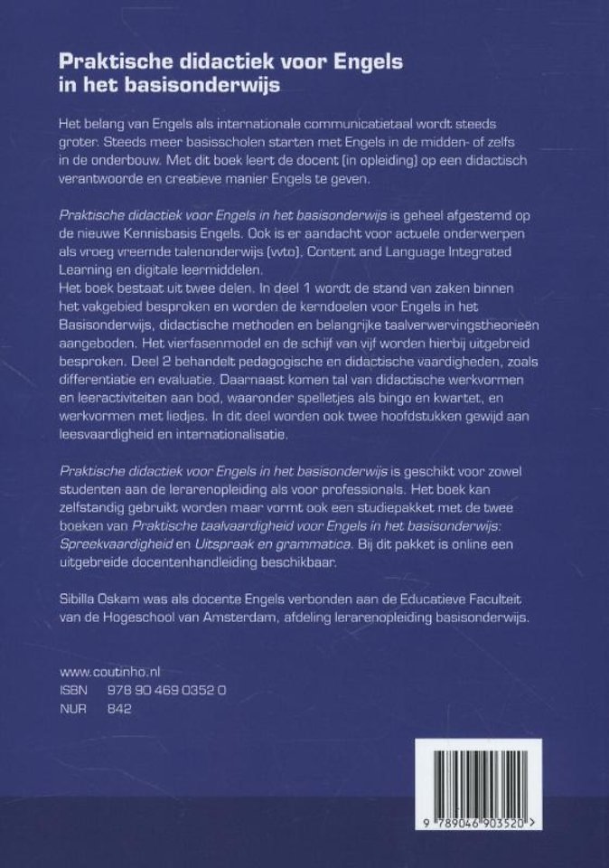Praktische didactiek voor Engels in het basisonderwijs is geschikt voor zowel studenten aan de lerarenopleiding als voor professionals. Het boek kan zelfstandig gebruikt worden maar vormt ook een studiepakket met de twee boeken van Praktische taalvaardigheid voor Engels in het basisonderwijs: Spreekvaardigheid en Uitspraak en grammatica. Bij dit pakket is online een uitgebreide docentenhandleiding beschikbaar.