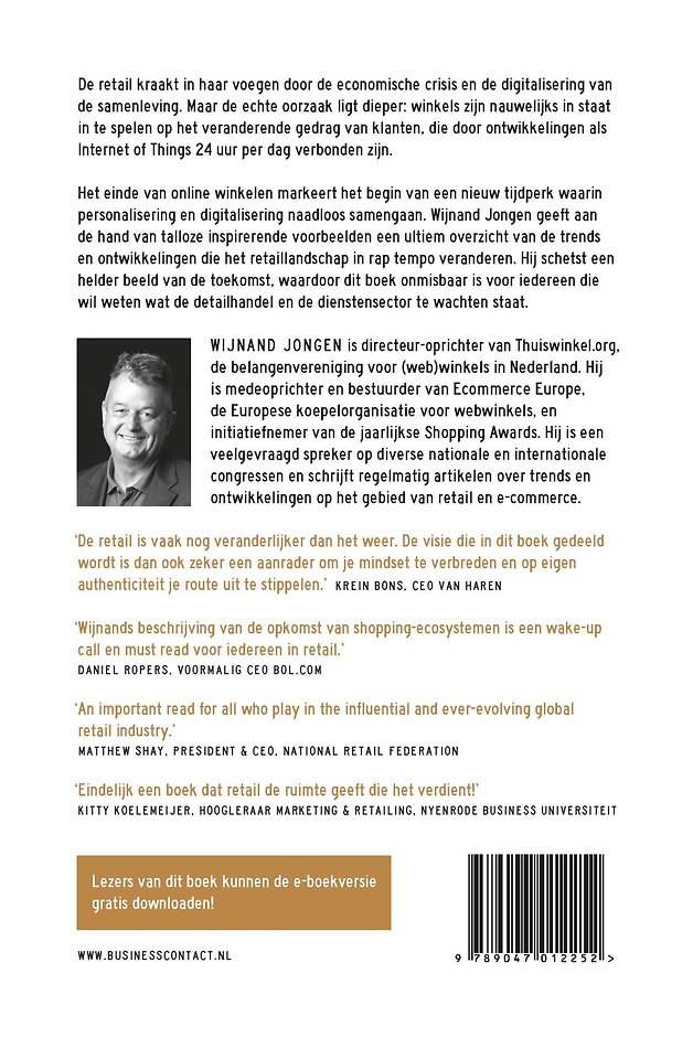 De retail kraakt in haar voegen door de economische crisis en de digitalisering van de samenleving. In 'Het einde van online winkelen' laat Wijnand Jongen zien dat de echte oorzaak dieper ligt: winkels zijn nauwelijks in staat in te spelen op het veranderende gedrag van klanten, die door ontwikkelingen als Internet of Things, 24 uur per dag verbonden zijn.