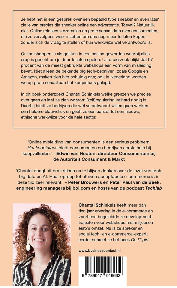 Meer over Chantal SchinkelsOnline retailers verzamelen op grote schaal data over consumenten, die ze vervolgens weer inzetten om ons nóg meer te laten kopen, schrijft Chantal Schinkels in Het koopinfuus. En dat zonder zich de vraag te stellen of hun werkwijze wel verantwoord is.