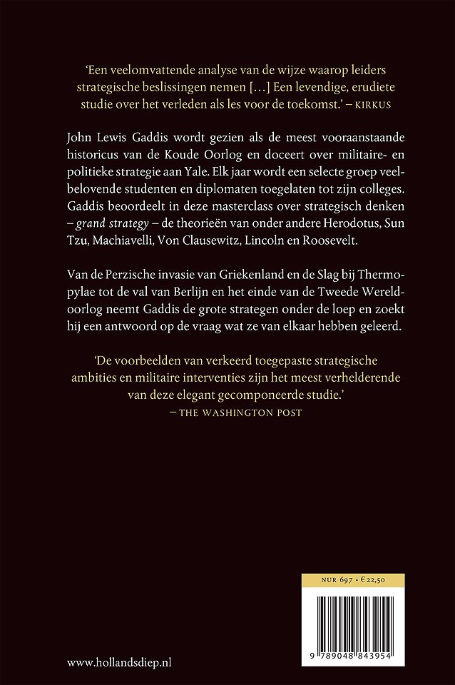 Meer over John Lewis GaddisJohn Lewis Gaddis wordt gezien als de meest vooraanstaande historicus van de Koude Oorlog en doceert over militaire- en politieke strategie aan Yale. Elk jaar wordt een selecte groep veelbelovende studenten en diplomaten toegelaten tot zijn colleges. Gaddis beoordeelt in deze masterclass over strategisch denken - grand strategy - de theorieën van onder andere Herodotus, Sun Tzu, Machiavelli, Von Clausewitz, Lincoln en Roosevelt.