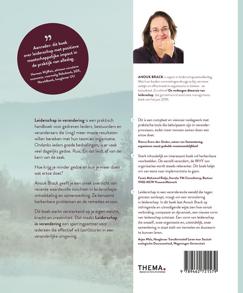 Anouk Brack geeft je een uniek overzicht van recente waardevolle inzichten in leiderschapsontwikkeling en samenwerking. Ze benoemt herkenbare problemen en de remedies ervoor. Dit boek werkt versterkend op je eigen inzicht, kracht en creativiteit. Dat maakt 'Leiderschap in verandering' een sparringpartner voor iedereen die effectief wil (aan)sturen in een veranderlijke omgeving.