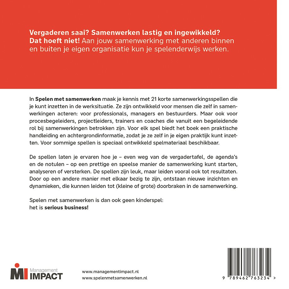 In dit boek 'Spelen met samenwerken' maak je kennis met 21 korte samenwerkingsspellen die je kunt inzetten in de werksituatie. Ze zijn ontwikkeld voor mensen die zelf in samenwerkingen acteren: voor professionals, managers en bestuurders. Maar ook voor procesbegeleiders, projectleiders, trainers en coaches die vanuit een begeleidende rol bij samenwerkingen betrokken zijn. Voor elk spel biedt het boek een praktische handleiding en achtergrondinformatie, zodat je ze zelf in je eigen praktijk kunt inzetten. Voor sommige spellen is speciaal ontwikkeld spelmateriaal beschikbaar.