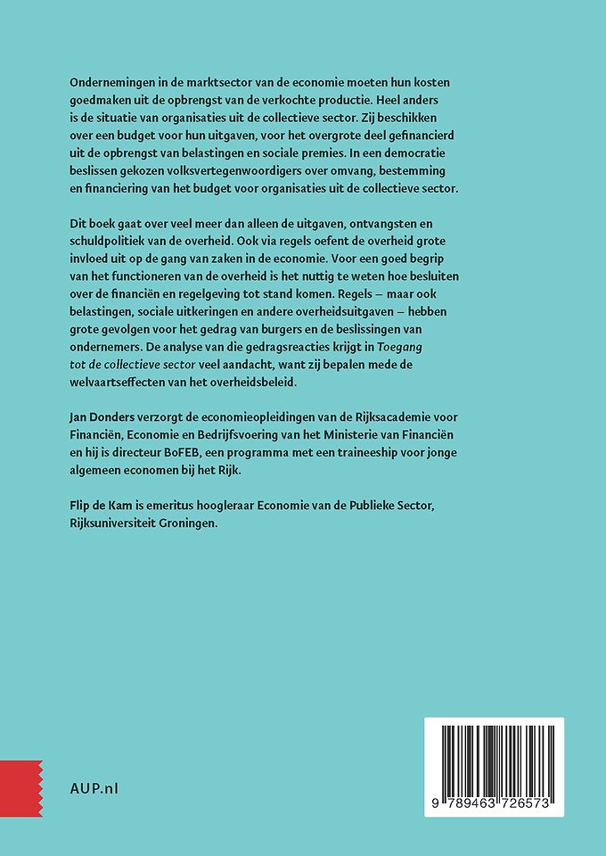 Dit boek gaat over veel meer dan alleen de uitgaven, ontvangsten en schuldpolitiek van de overheid. Ook via regels oefent de overheid grote invloed uit op de gang van zaken in de economie. Voor een goed begrip van het functioneren van de overheid is het nuttig te weten hoe besluiten over de financiën en regelgeving tot stand komen. Regels – maar ook belastingen, sociale uitkeringen en andere overheidsuitgaven – hebben grote gevolgen voor het gedrag van burgers en de beslissingen van ondernemers.