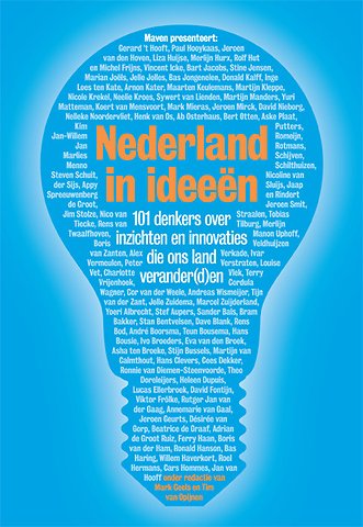 'Nederland in ideeën' het eerste boek van een serie waarin we elk jaar rond de 100 toonaangevende Nederlandse denkers vragen om kort en krachtig (max 1000 woorden) antwoord te geven op één centrale vraag. De vraag wisselt jaarlijks en zal altijd betrekking hebben op het raakvlak van wetenschap en maatschappij. Dit jaar was de vraag: 'Welk idee, inzicht of innovatie heeft Nederland veranderd - of zal dit in de toekomst gaan doen?'