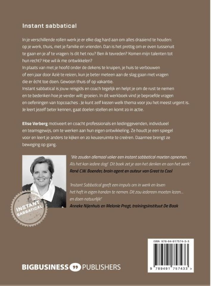 'We zouden allemaal vaker een instant sabbatical moeten opnemen. Als het kan iedere dag! Dit boek zet je aan het denken en aan het werk.' -