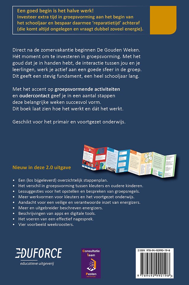 Om aan te sluiten bij de ontwikkelingen in het onderwijs en op basis van feedback van leerkrachten die met De Gouden Weken werken is een 2.0 versie verschenen. Het aantal pagina’s is ruim verdubbeld tot 180 met een duidelijk onderscheiden theoretisch - en praktijkgedeelte. Ook nieuw bij de 2.0 versie is een overzichtelijk stappenplan met alle do’s and don'ts op een rijtje.